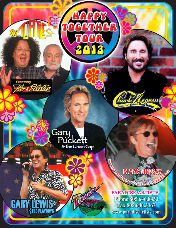 If you go to a Turtles concert now as part of the “Happy Together” concert you’ll see –and I hope somebody out there does this summer — it’s our 7th year. We’ve picked up more and more shows every year and this summer is just going to be ridiculous as far as the amount of cities that we’re going to and the shows themselves … But you’ll notice at least in our portion of the show (I don’t care about anybody else), there is a huge sense of humor. We don’t get that much time to show it off in between hits because we have to get on with the show, but we show people that we still had a sense of humor, that we still look at this career of ours as just something that fell from outer space and not something we earned like a bunch of arrogant pricks.